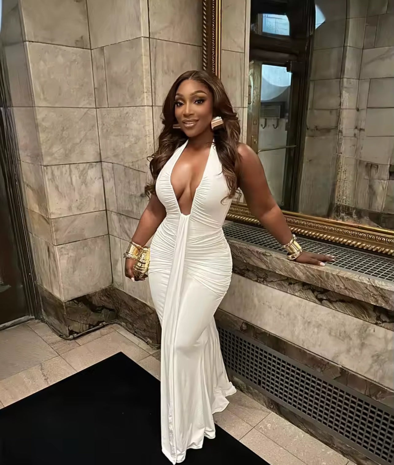 This plunge halter maxi dress hugs every curve.